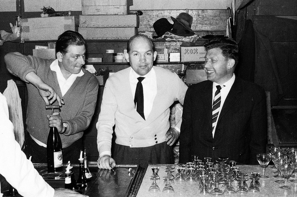 Vorheriges BildNächstes Bild 1962 – Zeltarbeit 1962 Assistenten hinter der Theke: Lothar Schlagheck und Walter Symes