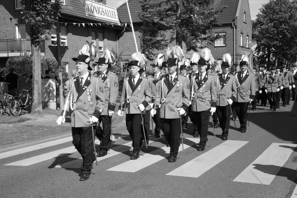 Vorheriges BildNächstes Bild 2006 – Pfingsten – Jägerzug 1 (sw) Der erste Jägerzug unter der Leitung von Harry Huppertz
