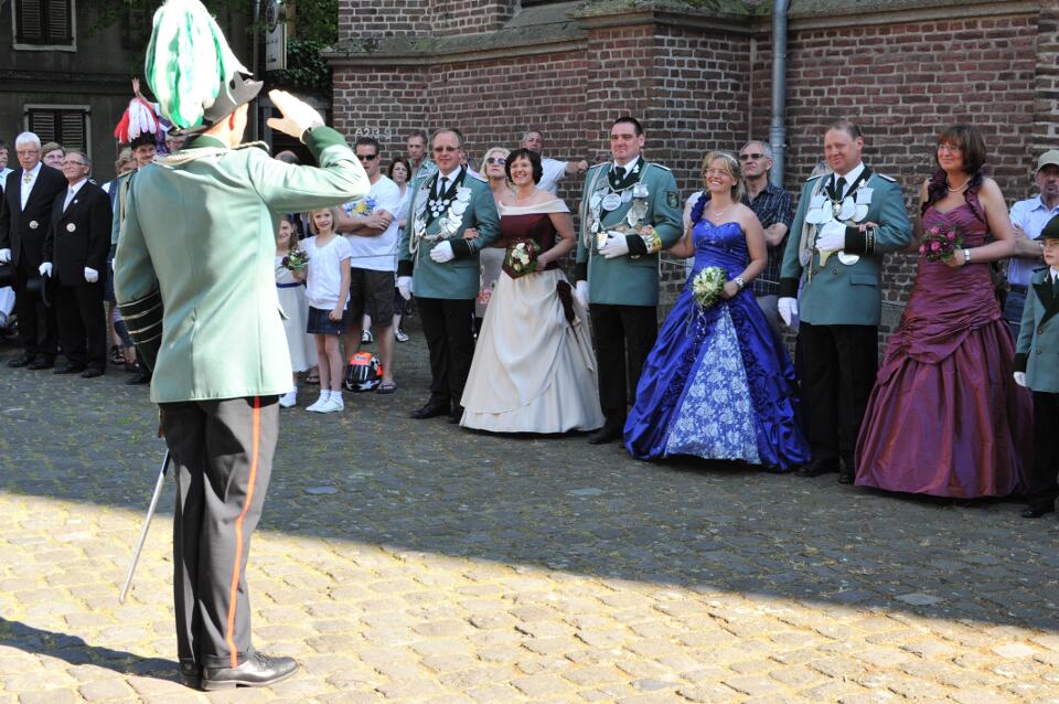 Vorheriges BildNächstes Bild 2012 – Meldung zur Parade 2012 Schützenzug zur Parade angetreten. Bitte um Durchführung der Parade durch Hauptmann Markus Welters bei König Dietmar Kuhn