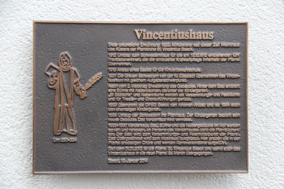 Vorheriges BildNächstes Bild 2014 – JHV – 02 – Tafel Die neue Tafel an unserm alten Pfarrheim – jetzt also Vincentiushaus