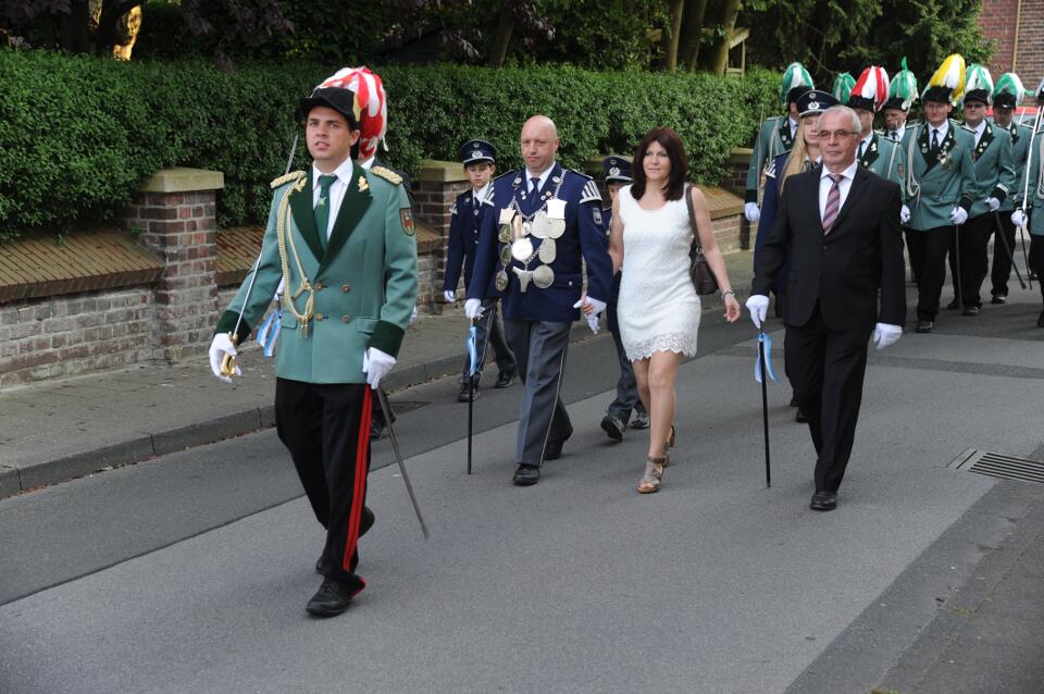 Vorheriges BildNächstes Bild 2015 – Pfingsten – So – 10 – König mit Frau Gefolge mit Königspaar Doris und Hans-Peter Kaulhausen